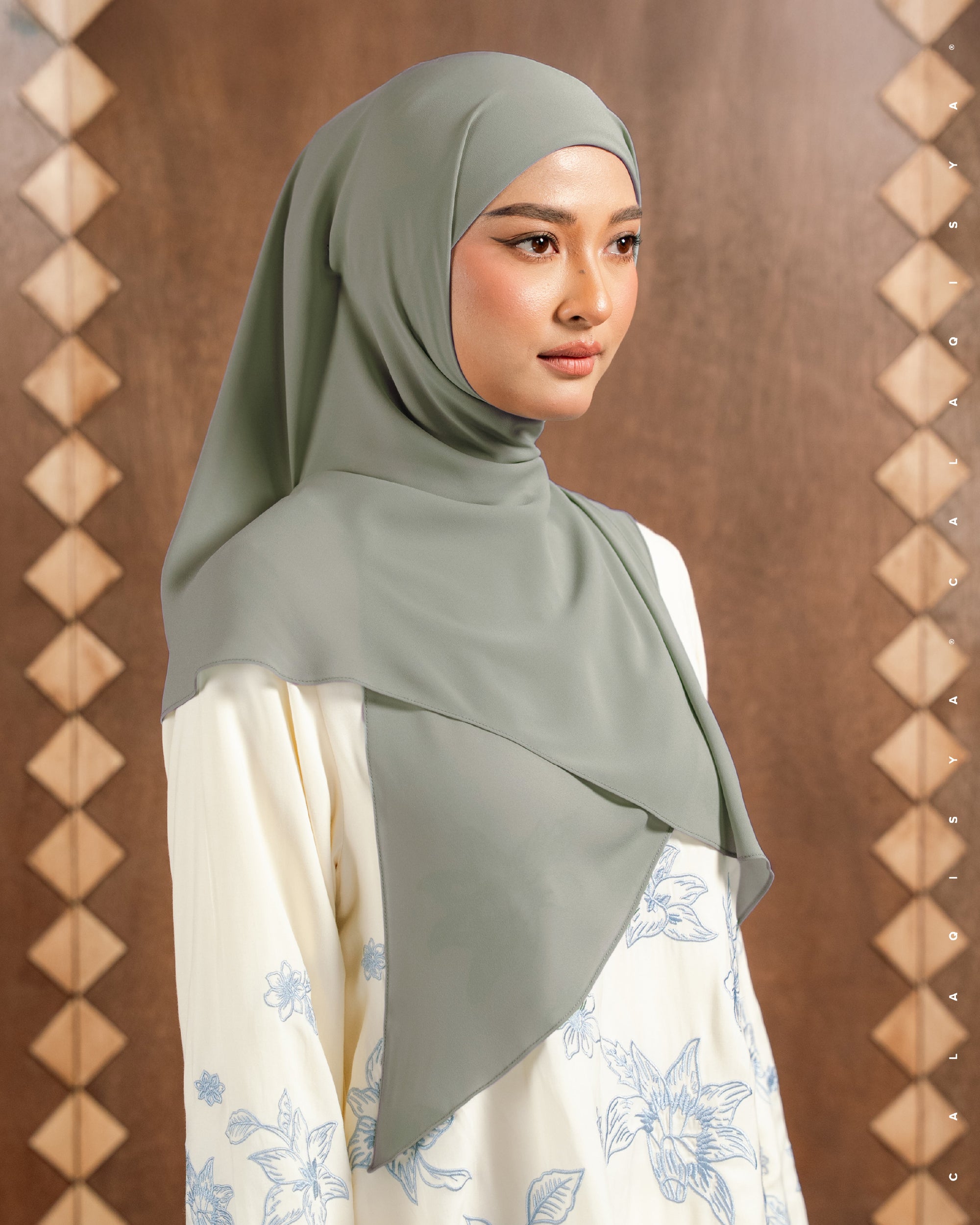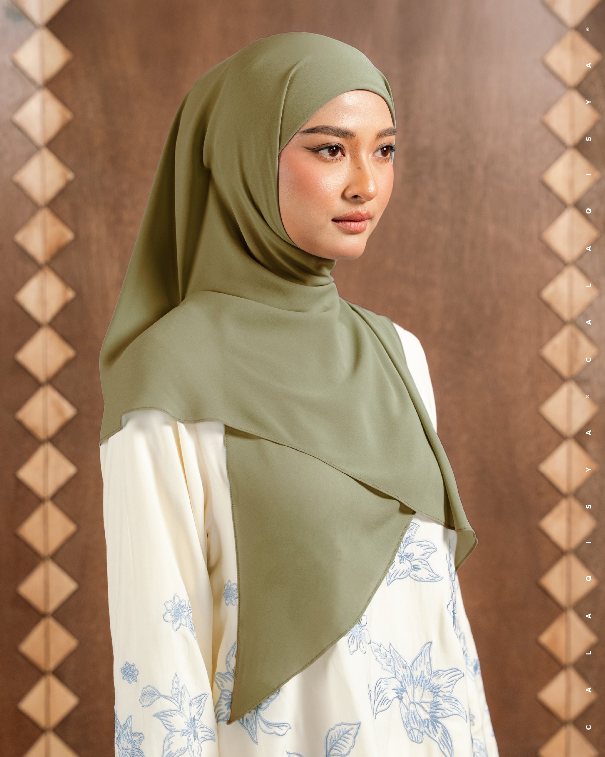DANIAH TIE BACK UNDERCHIN (TRIANGLE) IN ECRU OLIVE