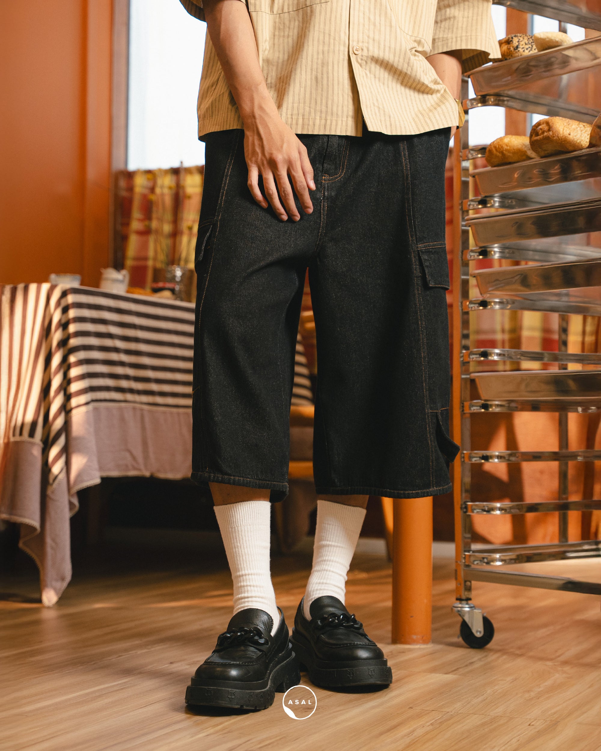 ASAL JEANS JORTS IN BLACK
